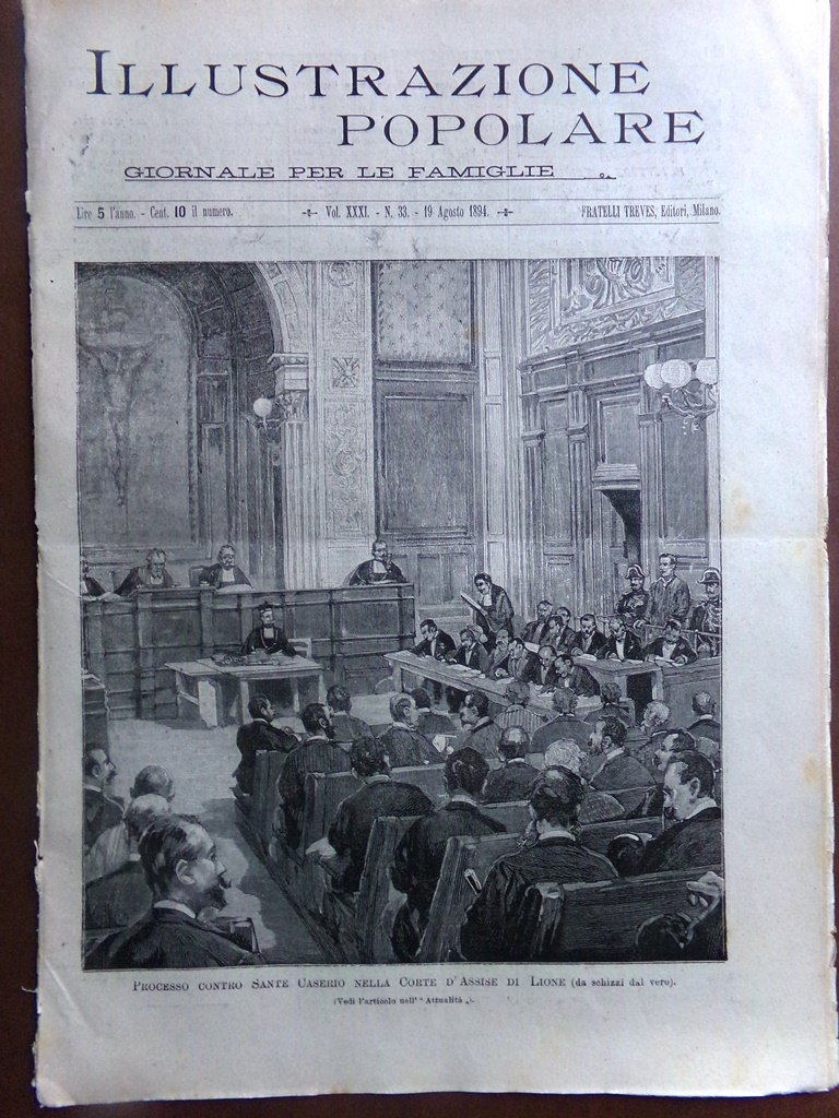 L'Illustrazione Popolare 19 Agosto 1894 Processo Sante Caserio Muzzioli Romanov