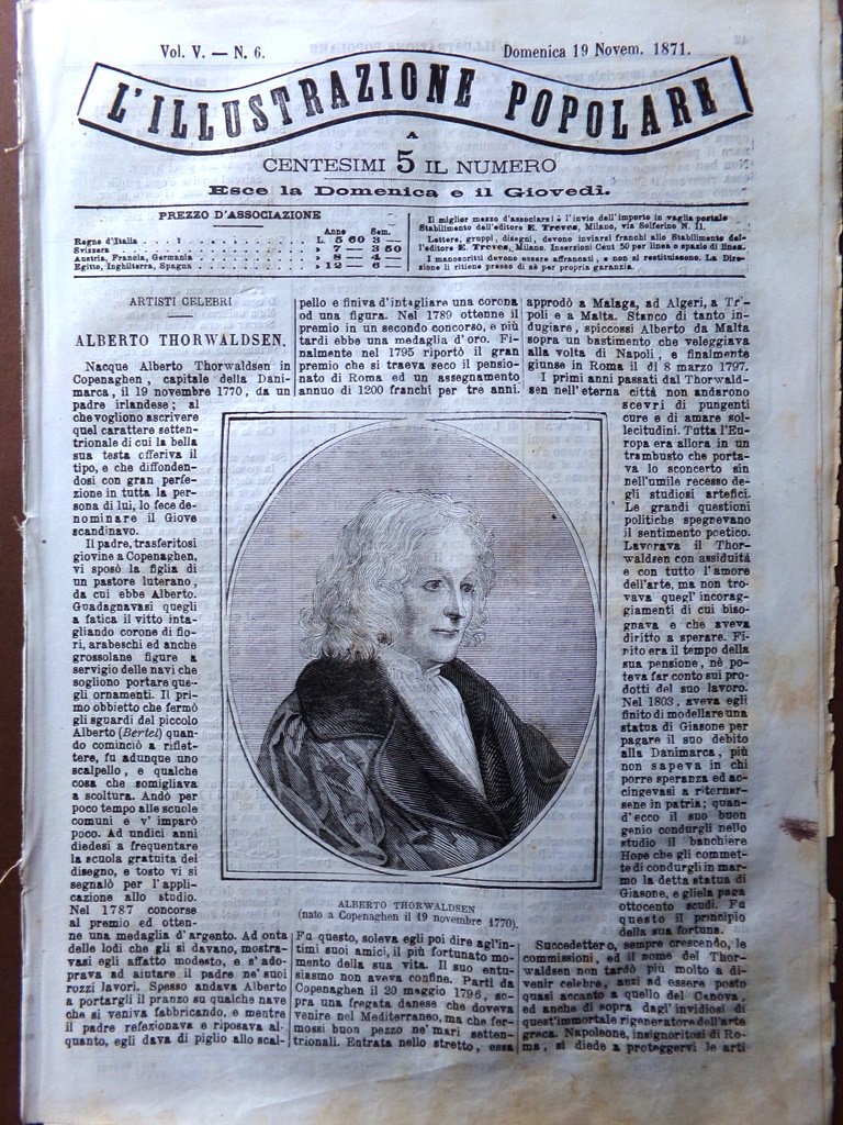 L'Illustrazione Popolare 19 Novembre 1871 Bertel Thorvaldsen Pesaro Forno Debiti