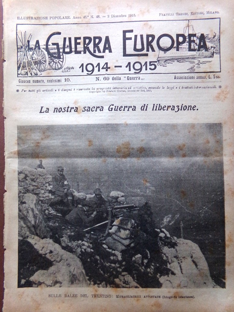 L'Illustrazione Popolare 2 Dicembre 1915 WW1 Bombe Tedeschi Cattedrali Montanari