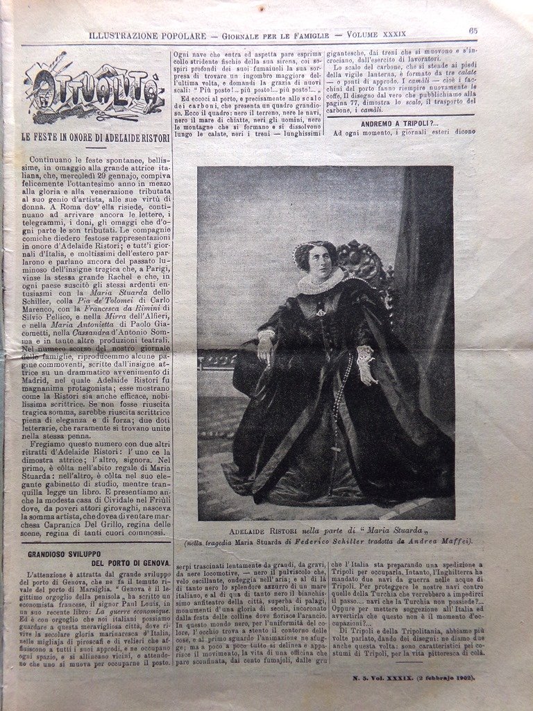 L'Illustrazione Popolare 2 Febbraio 1902 Adelaide Ristori Marconi Scavi Candia