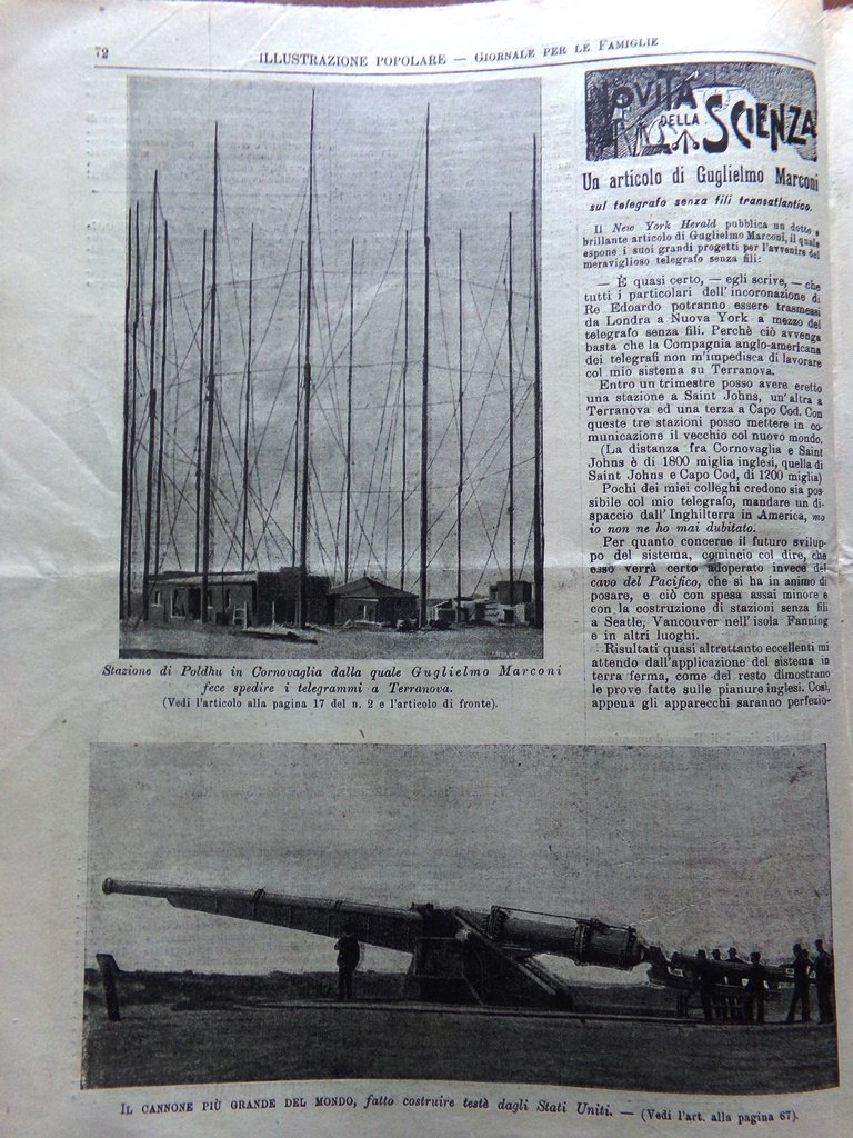 Un articolo di Guglielmo Marconi sul telefono senza fili transatlantico