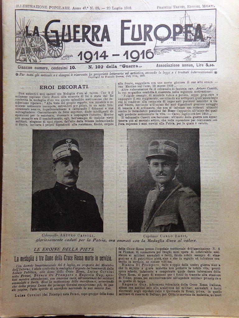 L'Illustrazione Popolare 20 Luglio 1916 WW1 Cassoli Bazzi Croce Rossa Adamello