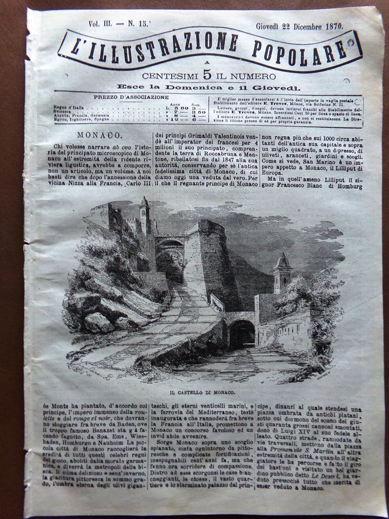 L'illustrazione Popolare 22 Dicembre 1870 Castello Monaco Eclisse Lippi Petrarca