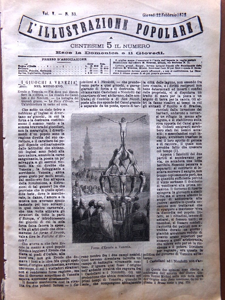 L'Illustrazione Popolare 22 Febbraio 1872 Venezia nel Medioevo Kaulbach Belluno