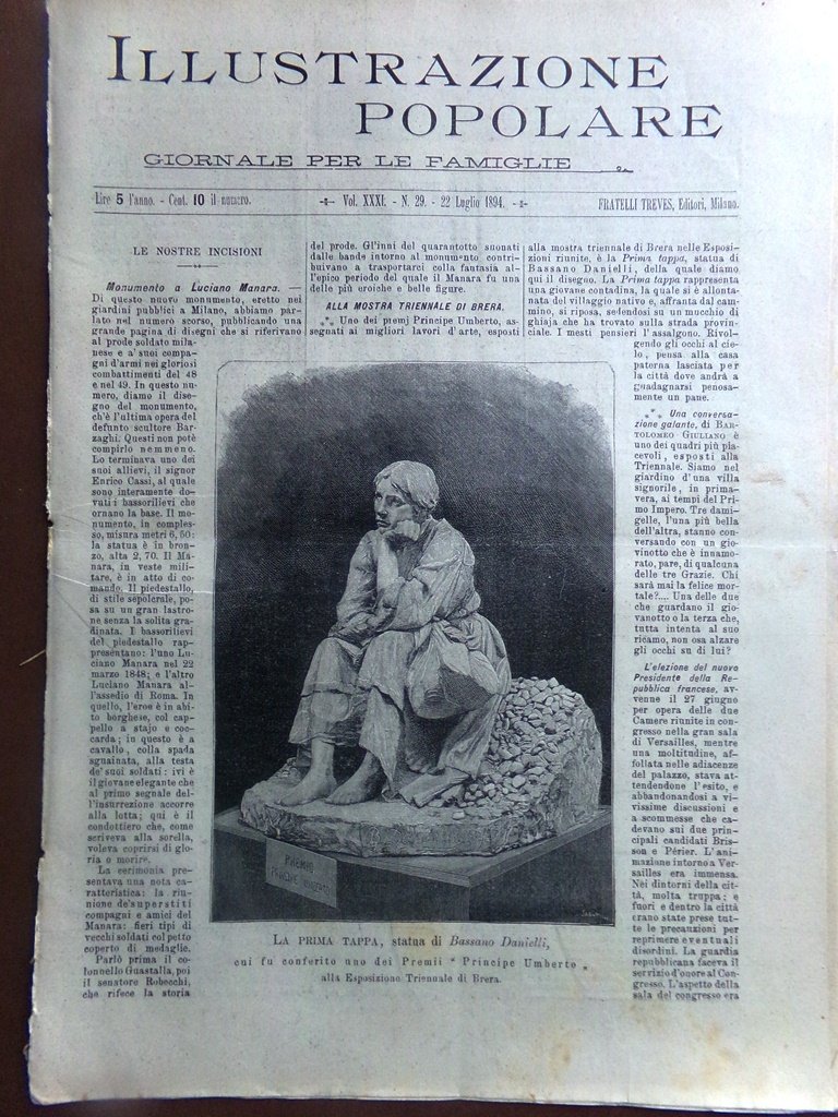 L'Illustrazione Popolare 22 Luglio 1894 Monumento Manara Montello Bagni Tirreno