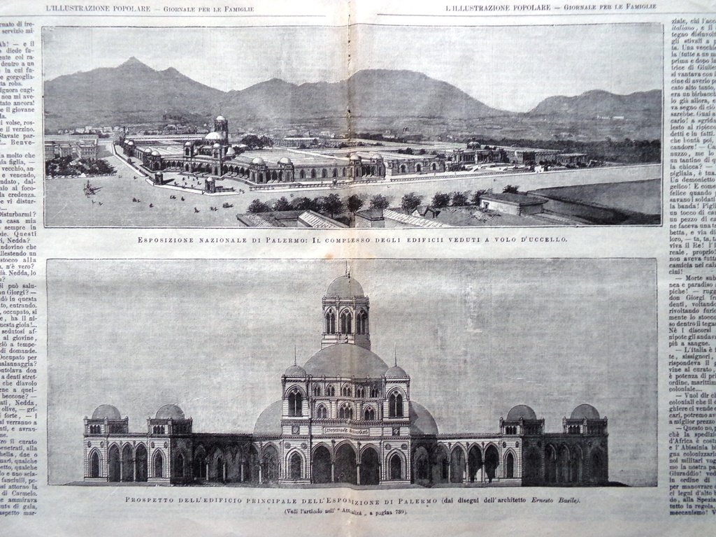 Prospetto dell'edificio principale dell'esposizione di Palermo (stampa in 2 pagine)