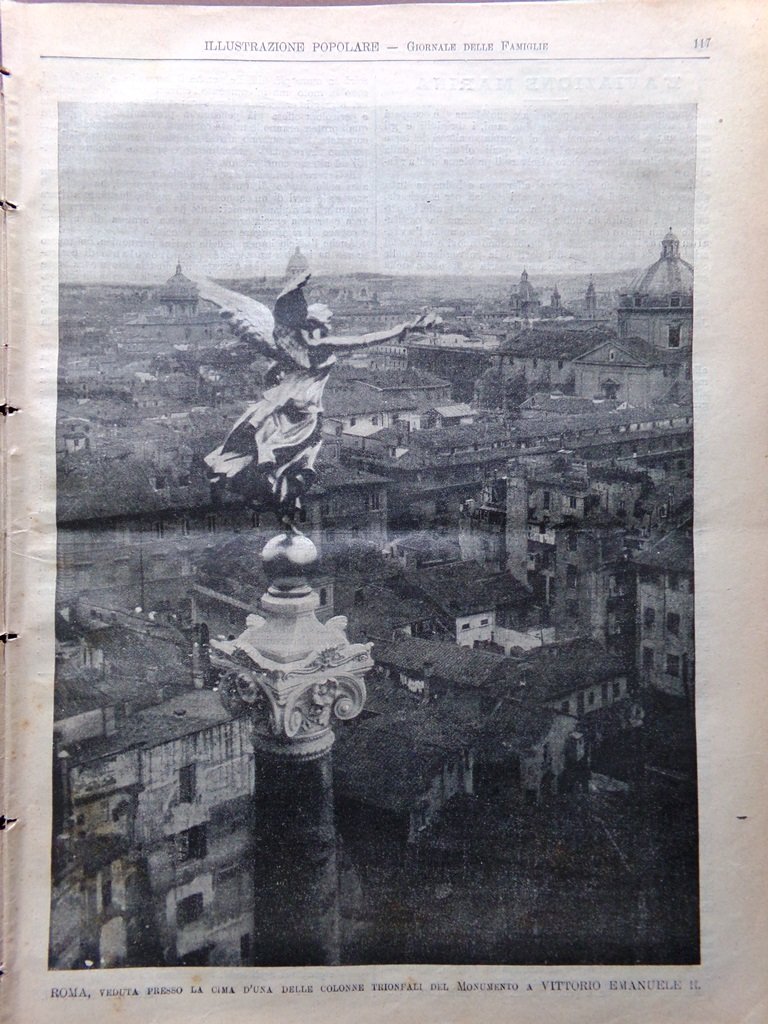 Roma veduta presso la cima d'una delle colonne trionfali del monumento a Vittorio Emanuele