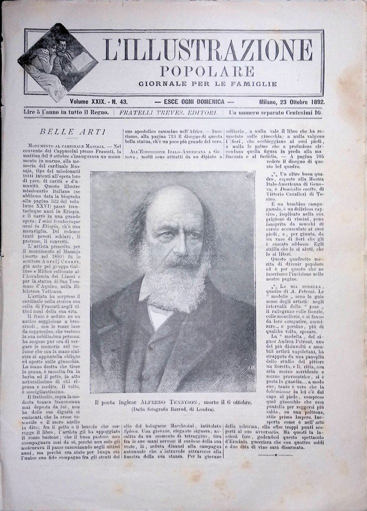 L'Illustrazione Popolare 23 Ottobre 1892 Alfred Tennyson Esposizione Arte Genova