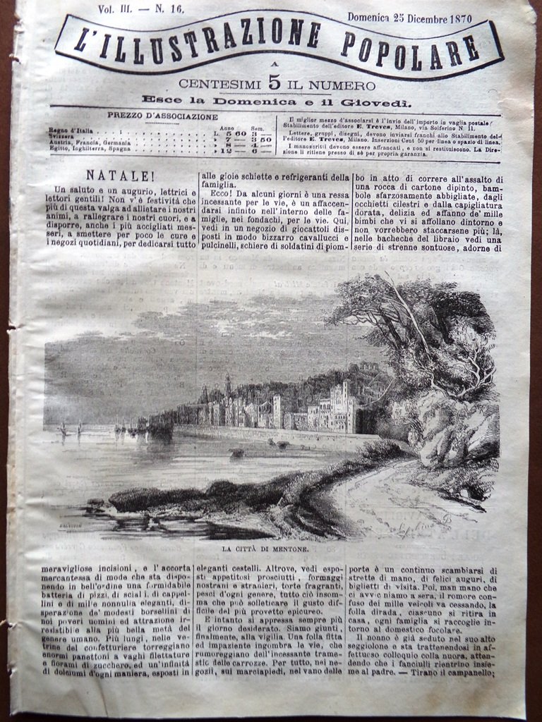 L'illustrazione Popolare 25 Dicembre 1870 Mentone Lippi Natale Scrittura Stampa