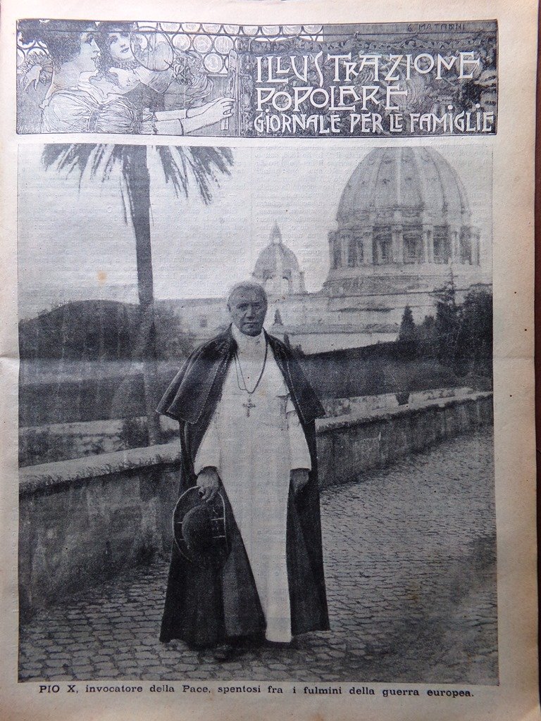 L'Illustrazione Popolare 27 Agosto 1914 WW1 Morte Pio X Invasione Liegi Tedeschi