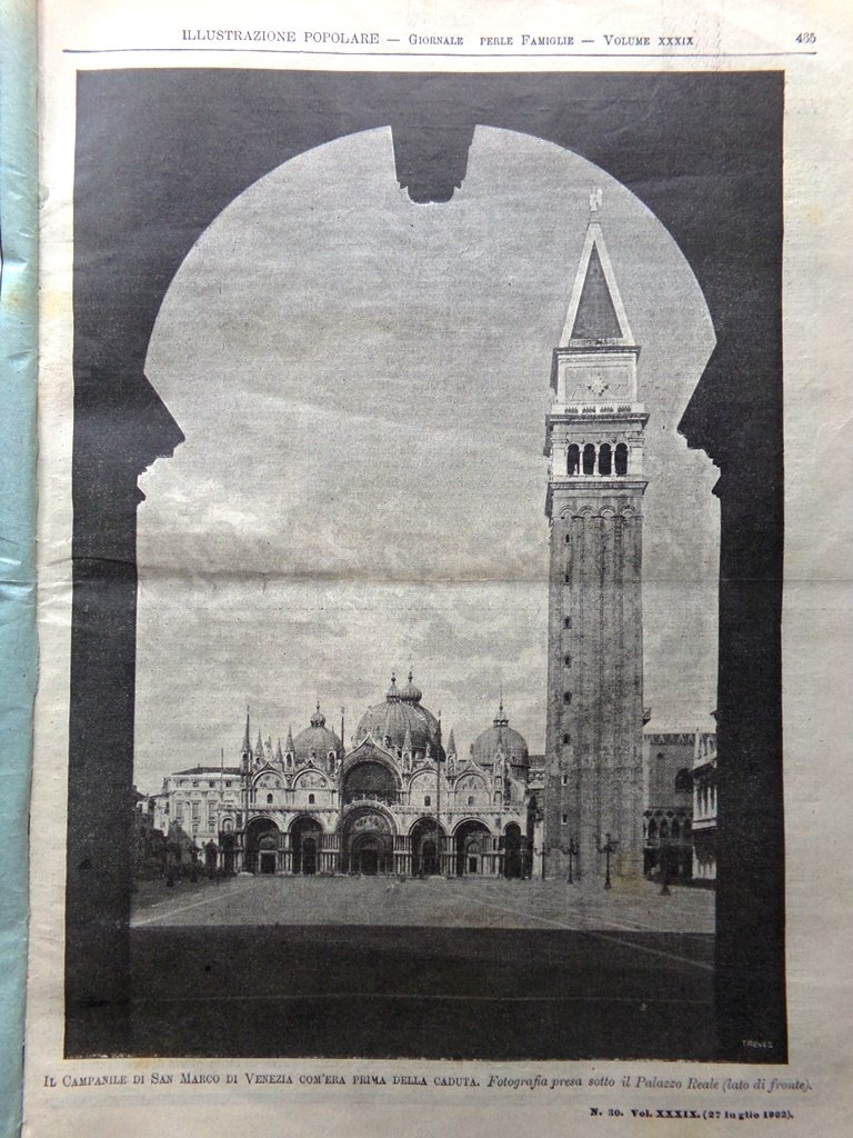 L'Illustrazione Popolare 27 Luglio 1902 Crollo de Campanile di San Marco Venezia