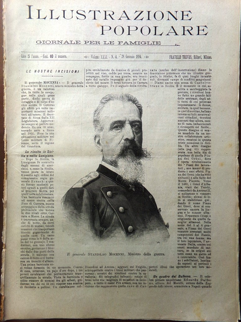 L'Illustrazione Popolare 28 Gennaio 1894 Cave Carrara Falò Castelvetrano Mocenni