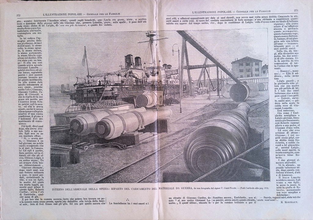 Interno dell'arsenale della Spezia: reparto del caricamento del materiale da guerra (stampa a 2 pagine)