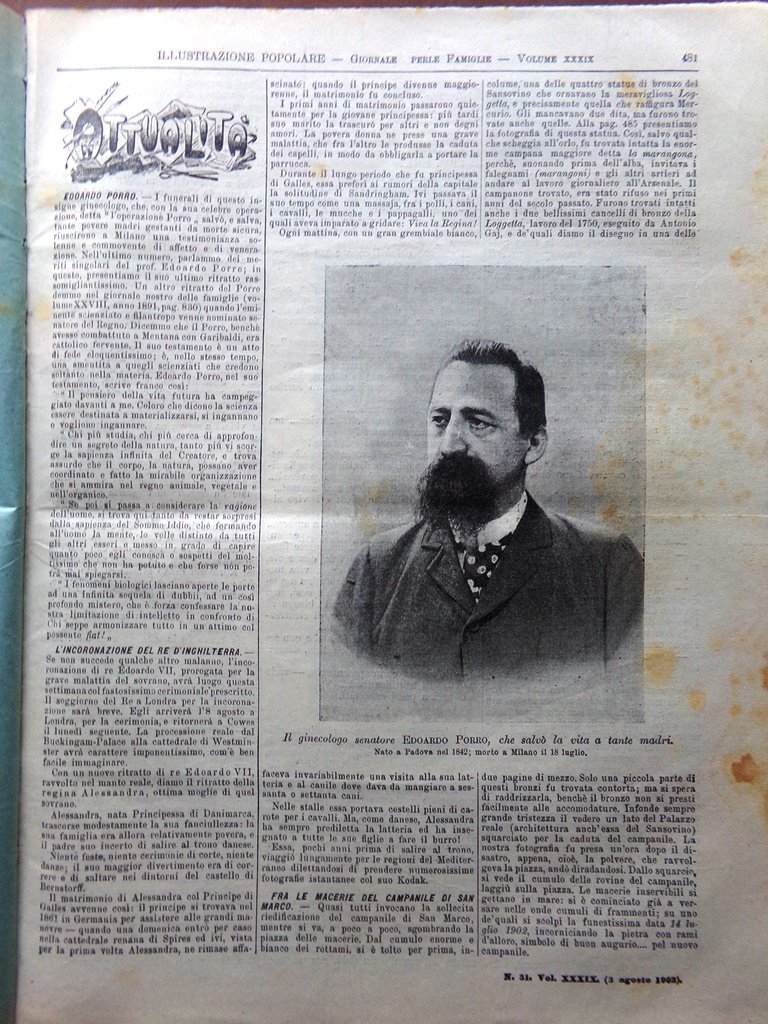L'Illustrazione Popolare 3 Agosto 1902 Porro Sansovino Venezia Campanile Marconi
