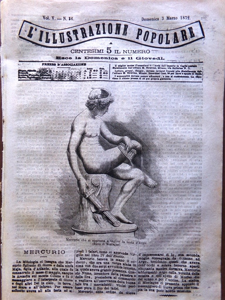 L'Illustrazione Popolare 3 Marzo 1872 Mercurio Duomo di Modena Ponte Braga Nizza