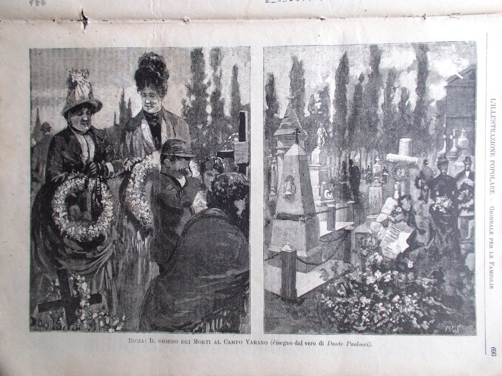 Roma: il giorno dei Morti al Campo Varano (disegno dal vero di Dante Paolocci)