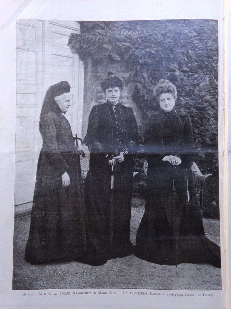 Le loro maestà Margherita e Maria Pia, con la principessa Clotilde (Stampa)