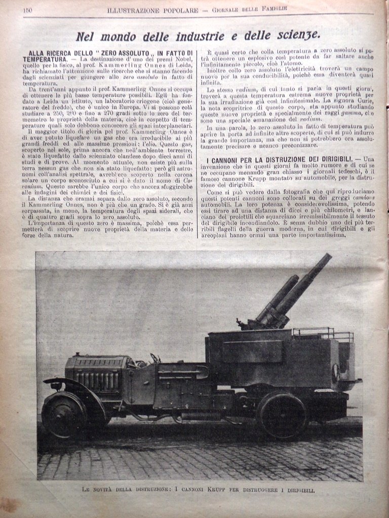 Industrie: alla ricerca dello zero assoluto nella temperatura, i cannoni Krupp per distruggere i dirigibili, ancora sulla scoperta della nuova carne