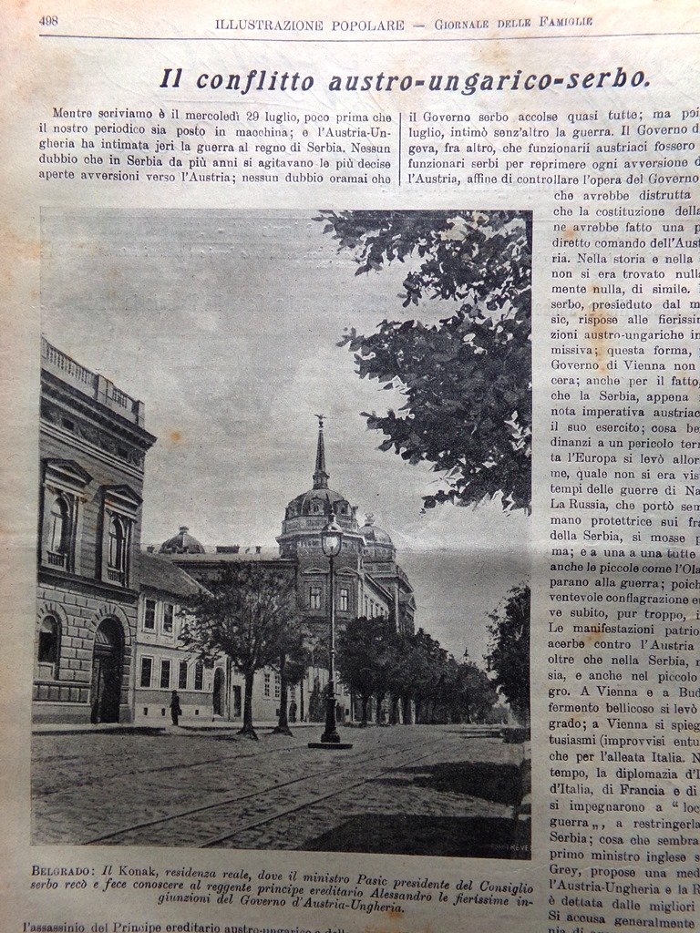 L'Illustrazione Popolare 6 Agosto 1914 WW1 Guerra Serbia Dodu De Lellis Cadorna