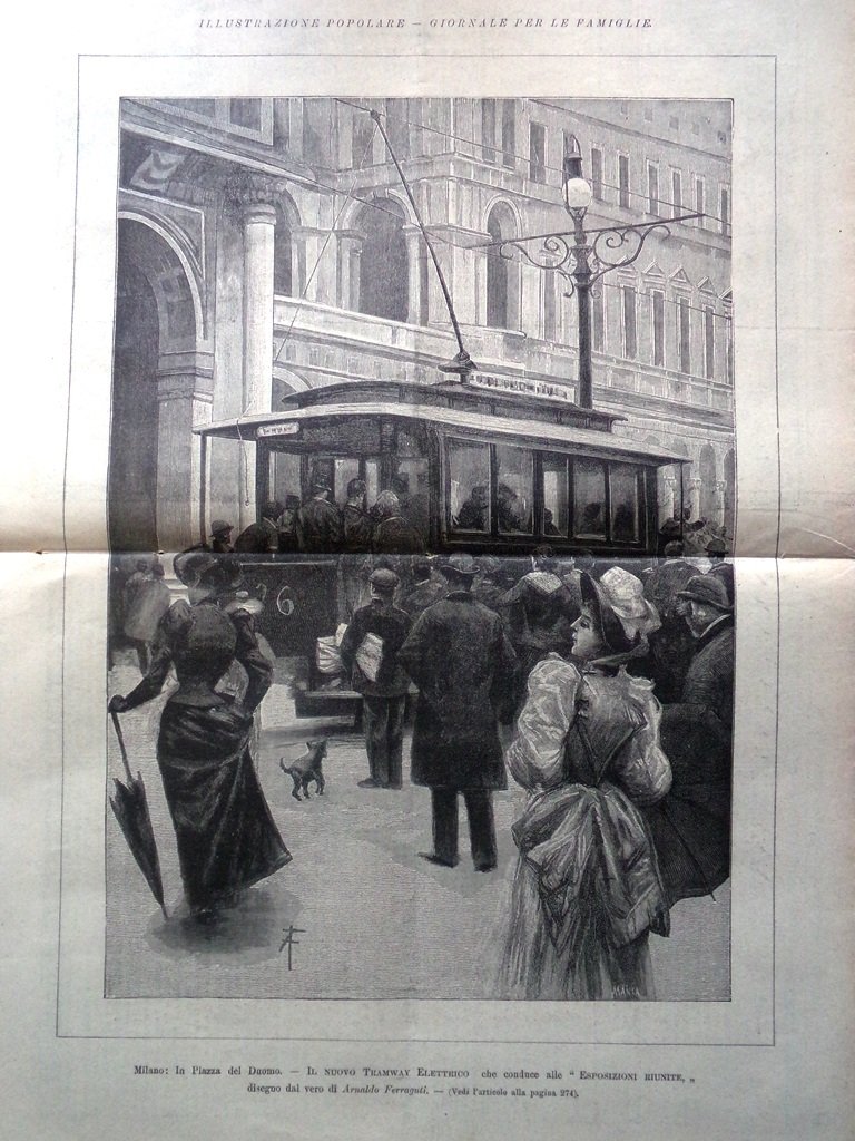 Milano: In piazza del Duomo il nuovo Tram elettrico (Stampa a 2 pagine)