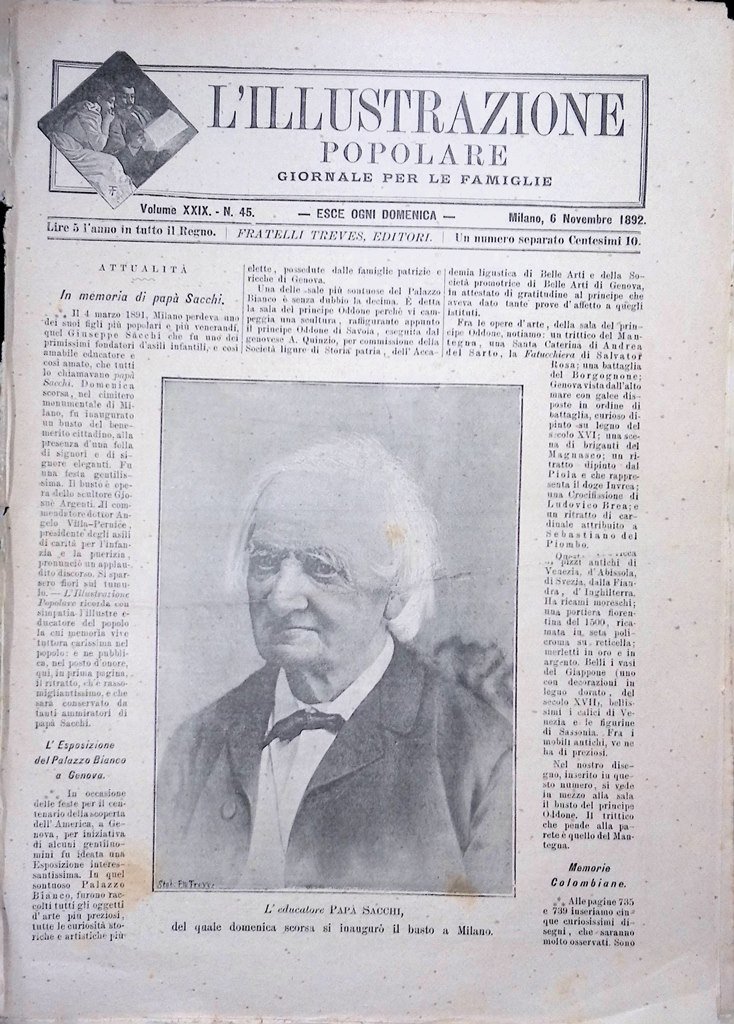L'Illustrazione Popolare 6 Novembre 1892 Papà Sacchi Disegni Colombo Esposizione