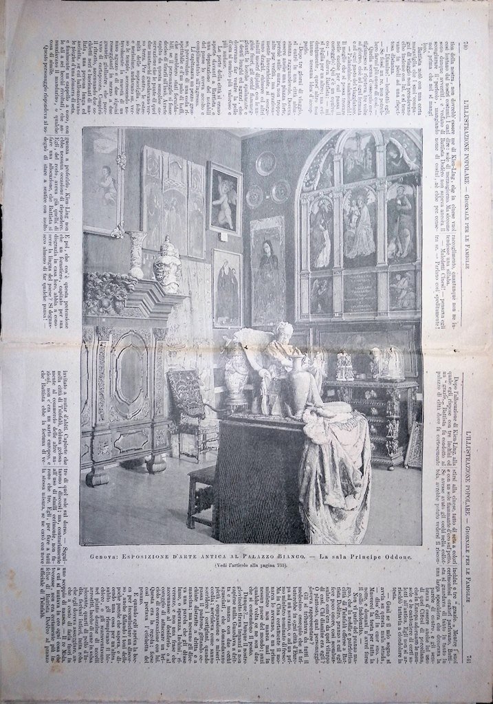 Genova: esposizione d'arte antica al Palazzo Bianco - la sala Principe Oddone (stampa a 2 pagine)