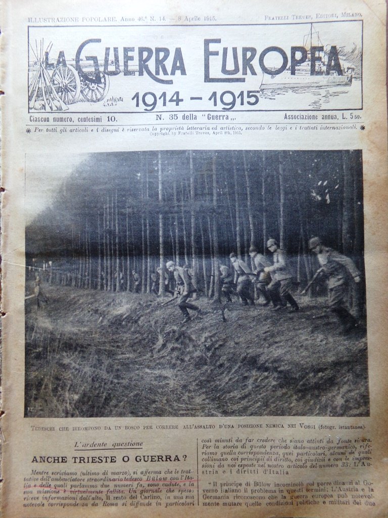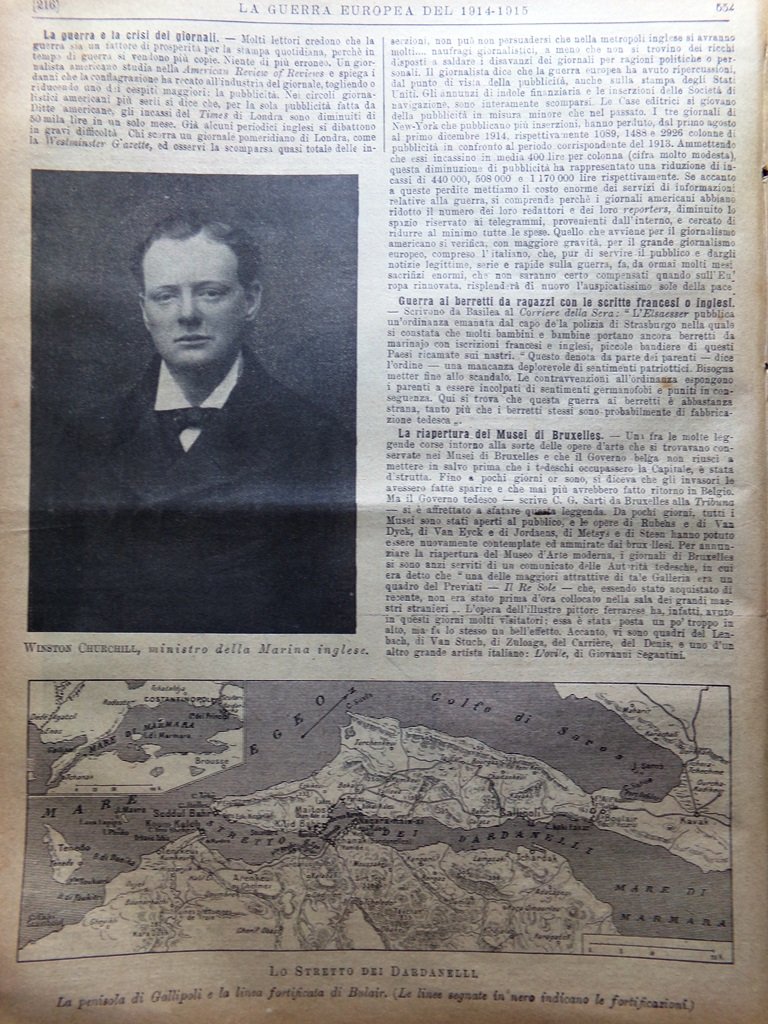 L'Illustrazione Popolare 8 Aprile 1915 WW1 Trieste Bouvet Churchill Dardanelli