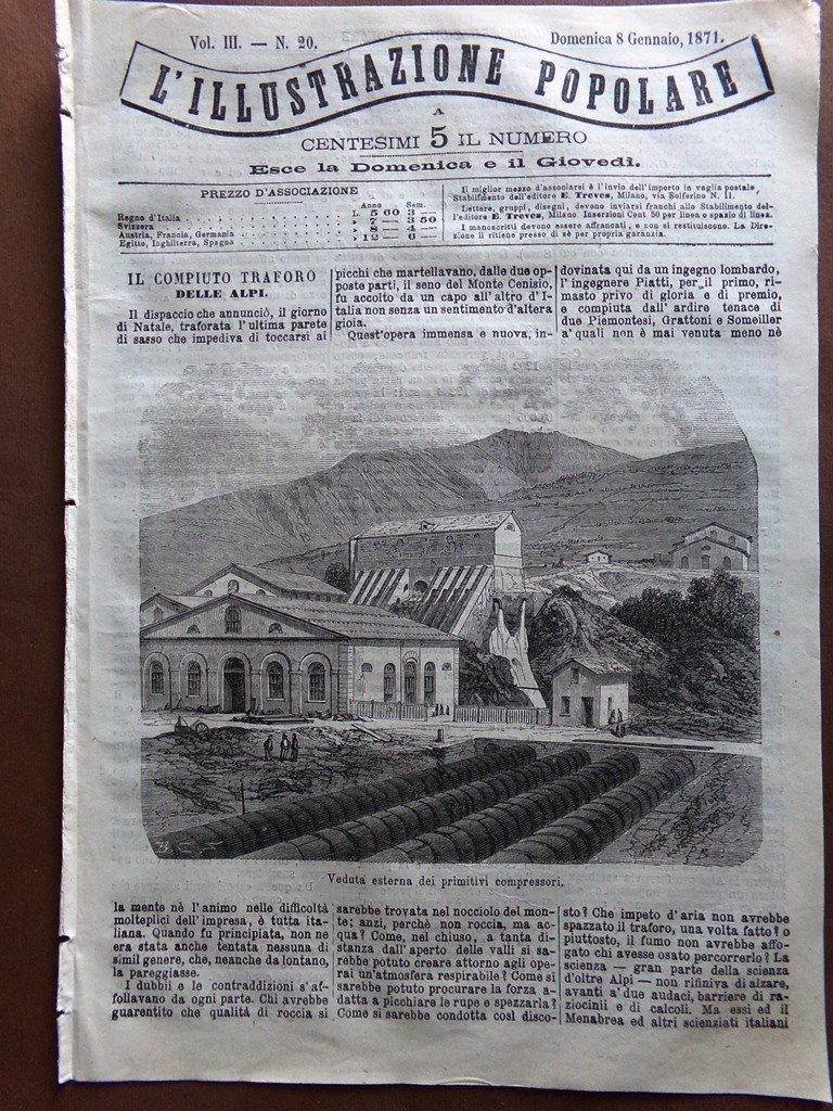 L'illustrazione Popolare 8 Gennaio 1871 Traforo Alpi Verona Castello di Donchery