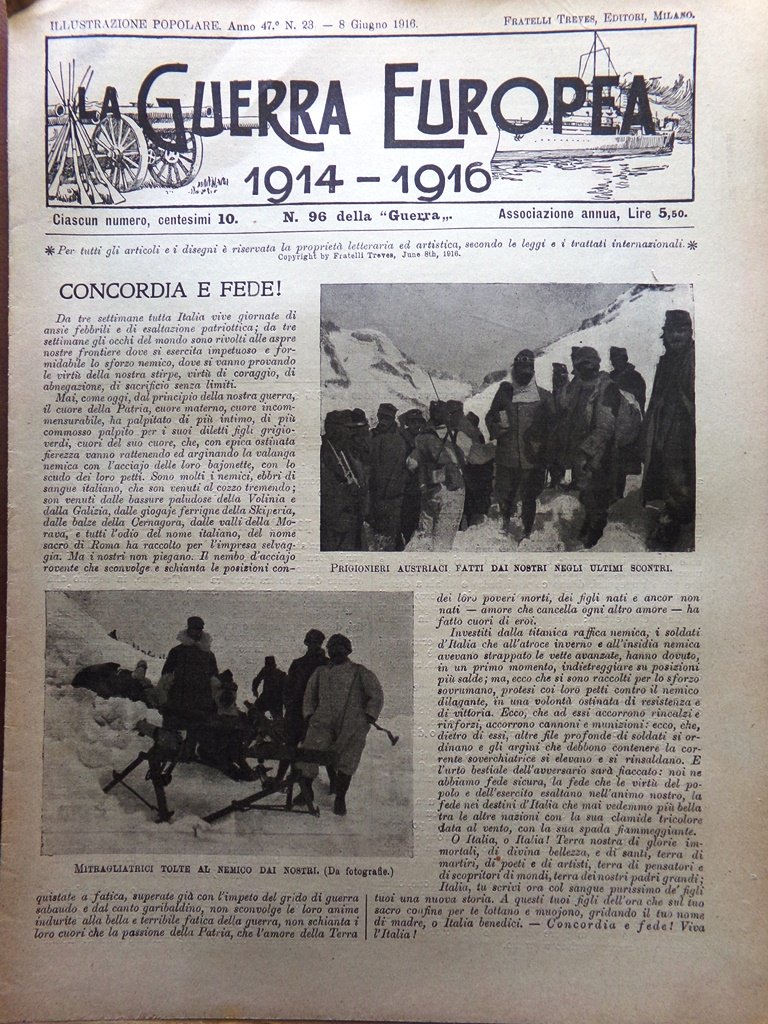 L'Illustrazione Popolare 8 Giugno 1916 WW1 Trieste Esploratori Gallieni Donato