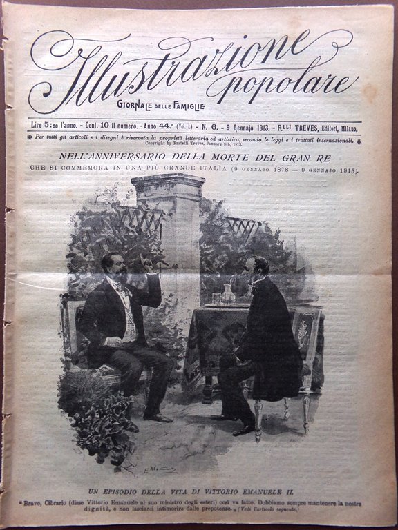 L'Illustrazione Popolare 9 Gennaio 1913 Anniversario Re Volta Rapisardi Balcani