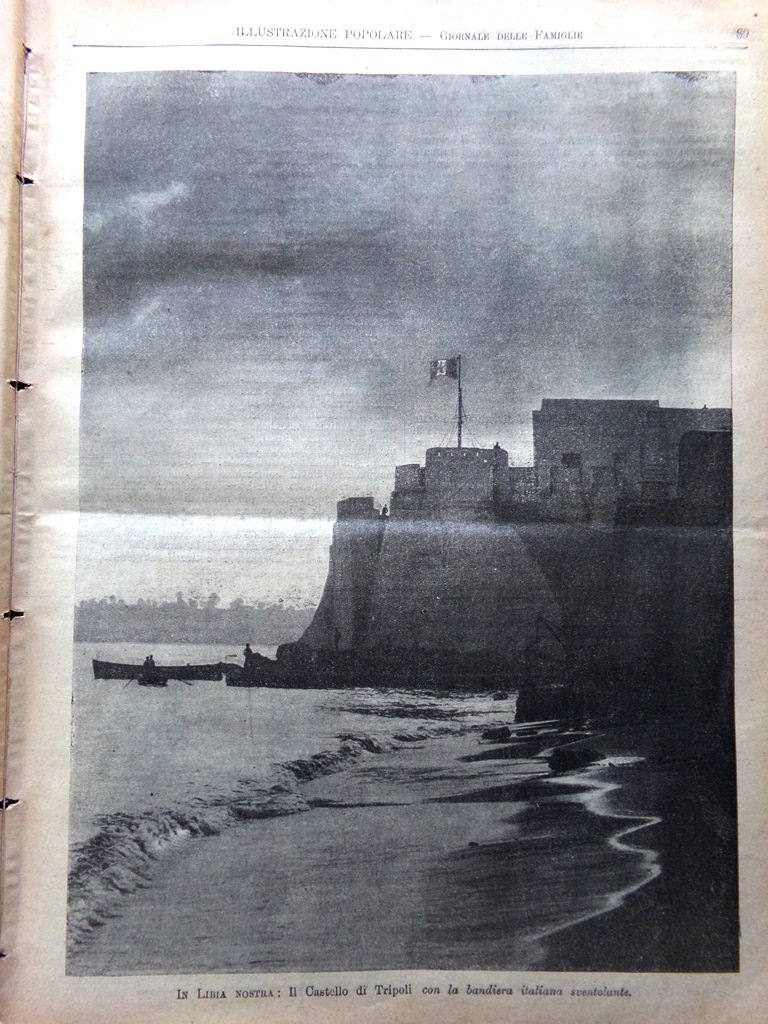 In Libia nostra: il castello di Tripoli con la bandiera italiana (Stampa)