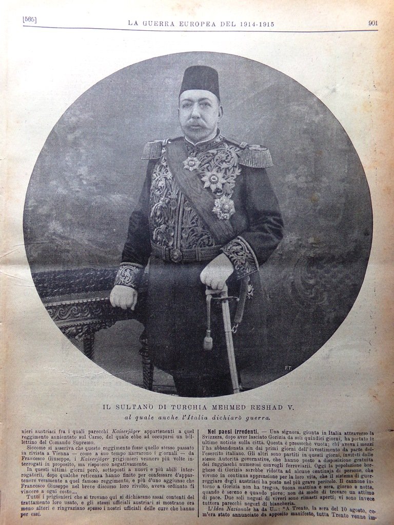 L'Illustrazione Popolare 9 Settembre 1915 WW1 Edoardo Dalbono Turchia Mehmet V