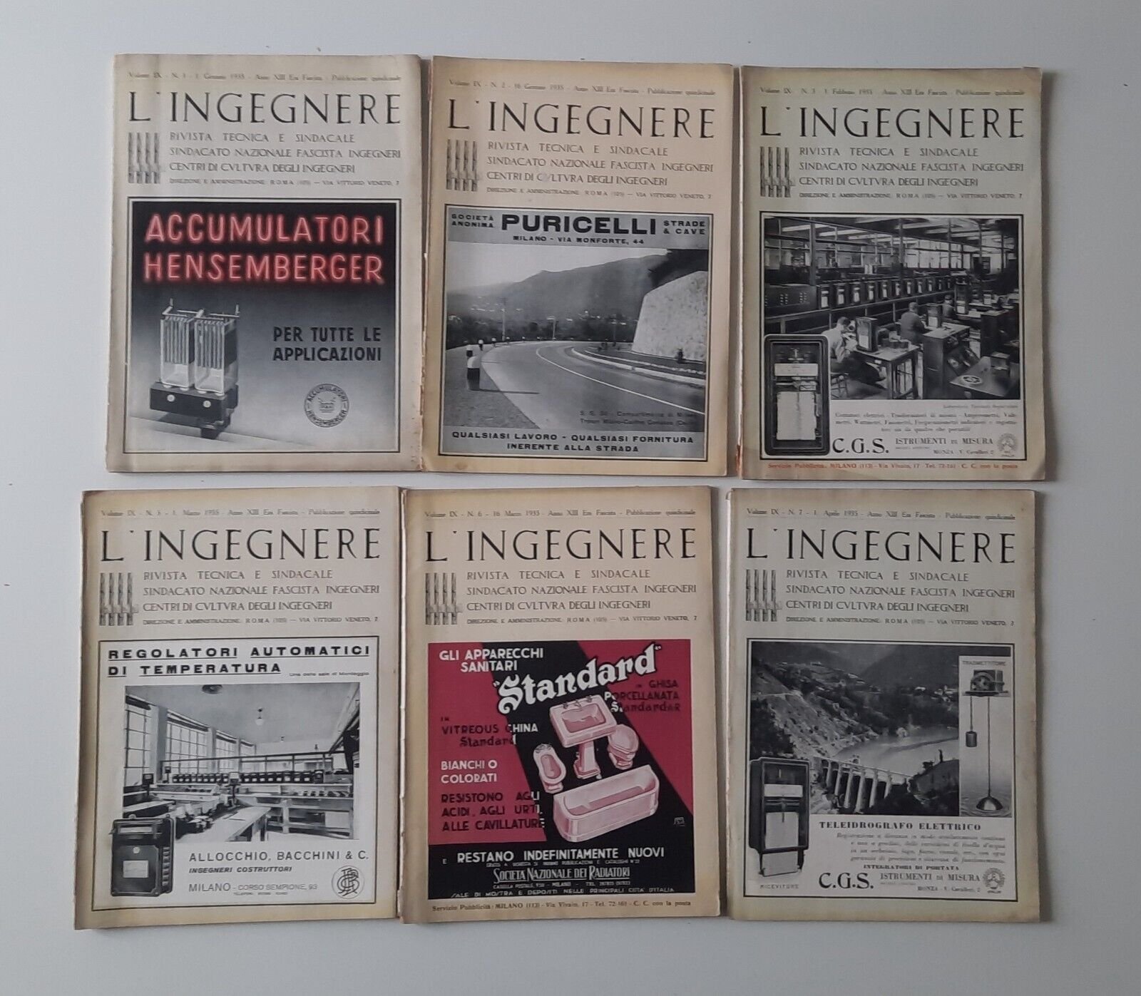 L'INGEGNERE RIVISTA TECNICA E SINDACALE 1935 6 NUMERIIn 4° , legatura editoriale, copertina illustrata.Lievi segni alla copertina.