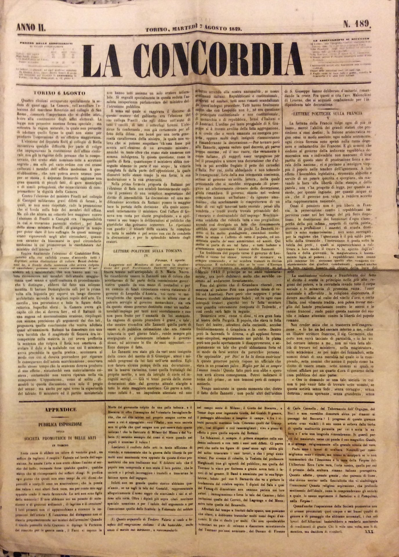 LA CONCORDIA - ANNO II, N. 189. - Martedì 7 agosto 1849.