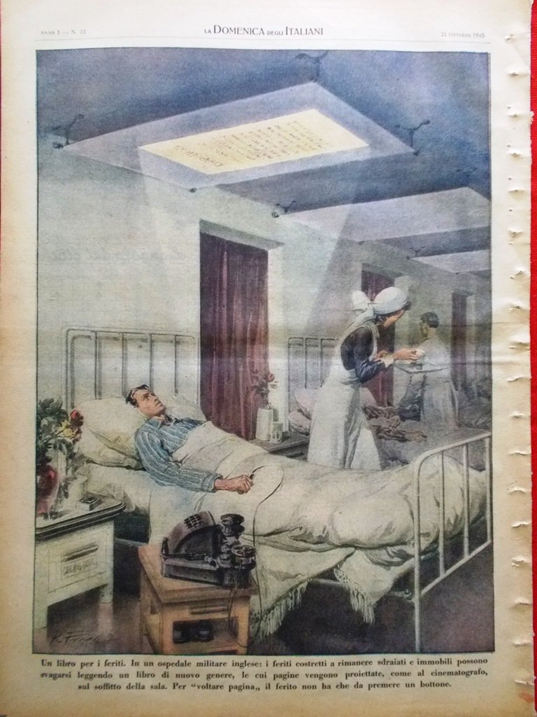 Un libro per i feriti. In un ospedale militare inglese: i feriti costretti a rimanere sdraiati e immobili possono svagarsi leggendo un libro di nuovo genere, le cui pagine vengono proiettate, come al cinematografo, sul soffitto della sala. Per "voltare pagina" il ferito non ha che da premere un bottone