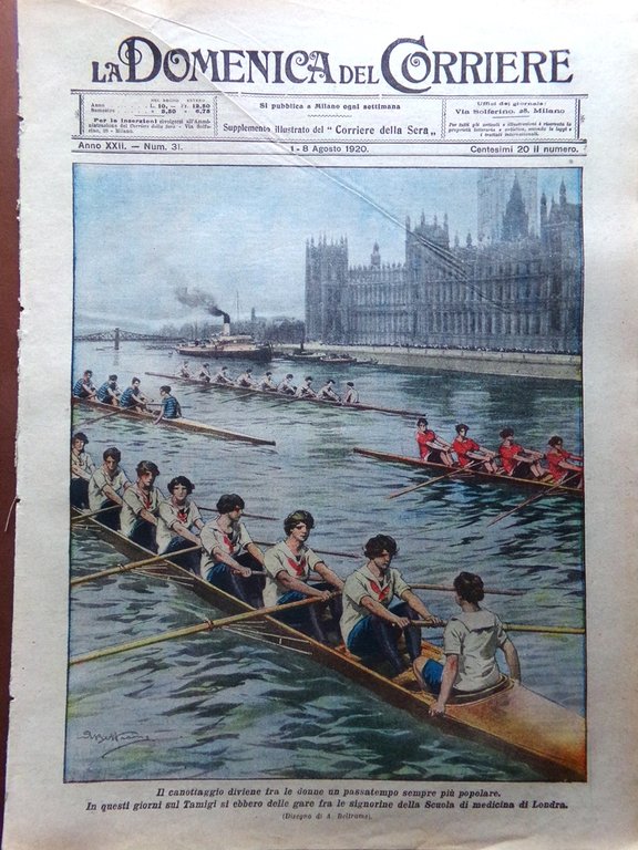 La Domenica del Corriere 1 Agosto 1920 Olimpiadi Palloni Alpini Fischer Berlino