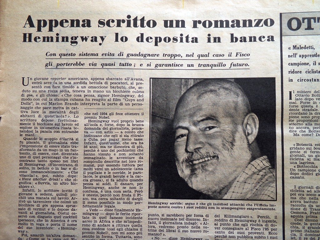 La Domenica del Corriere 1 Gennaio 1956 Hemingway Luna Bottecchia Maya Treviso