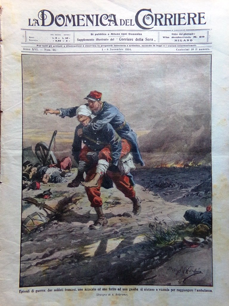 La Domenica del Corriere 1 Novembre 1914 WW1 Raymond Asti Sardegna Indiani Spie