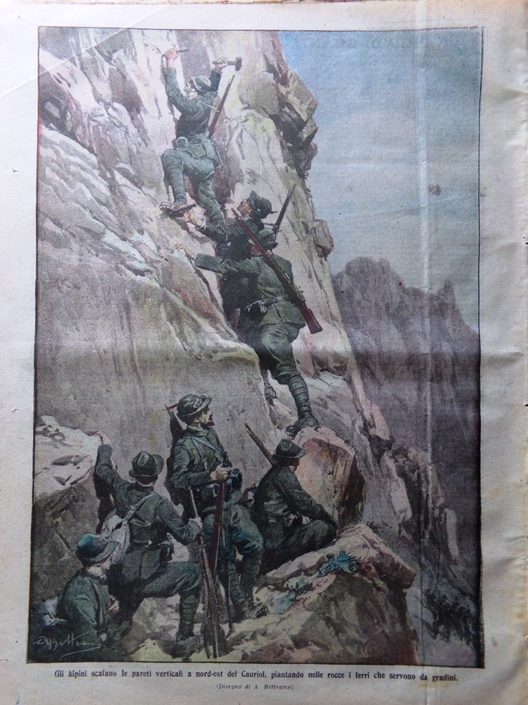 LA DOMENICA DEL CORRIERE Rivista Originale del 1 Ottobre 1916 Anno 18 nr. 40 pagine: 16 dimensioni: 38 x 28 cm IN PRIMA PAGINA: Un assalto notturno, sotto un diluvio di pioggia per la conquista di Quota 144 (Achille Beltrame) NELL'ULTIMA PAGINA: Gli alpini scalano le pareti verticali a nord-est del Cauriol, piantando nelle rocce i ferri che servono da gradini (Achille Beltrame) ALL'INTERNO: Come i tedeschi contano i prigionieri (vignette) Decorati al valore I nuovi barbari contro Venezia A Salonicco L'eroe di un'odissea: Carlo Adamoli Le premiazioni del XX settembre L'offensiva di settembre La medaglia d'oro al sottotenente Baruzzi Un blocco del Pireo 66 anni fa CONDIZIONI DELLA RIVISTA: BUONE, NORMALI SEGNI DEL TEMPO, SOVRACOPERTINE MANCANTI NOTE PARTICOLARI: PICCOLO ANGOLINO INFERIORE ESTERNO MANCANTE A PAG 3/4, PIEGA SULLA COPERTINA POSTERIORE (V. FOTO)