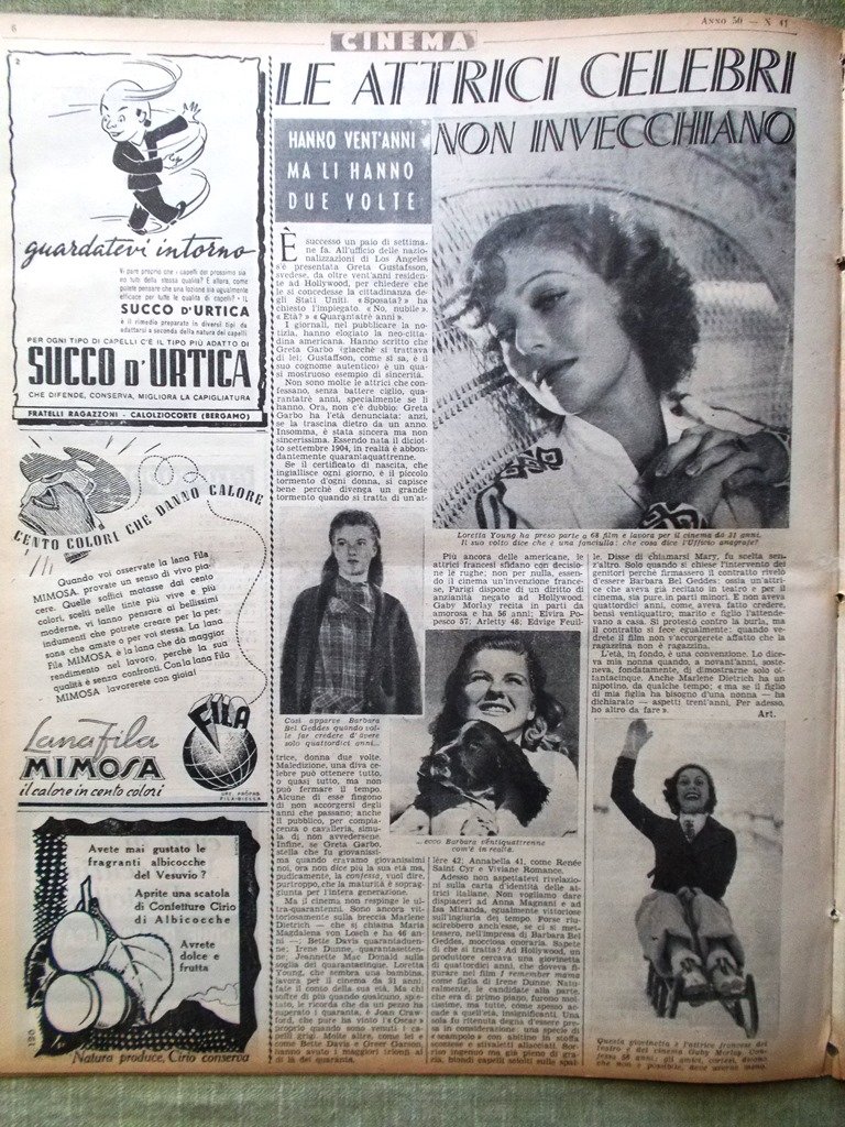 Le attrici celebri non invecchiano: Loretta Young, Gaby Morlay, Bel Geddes, Barbara