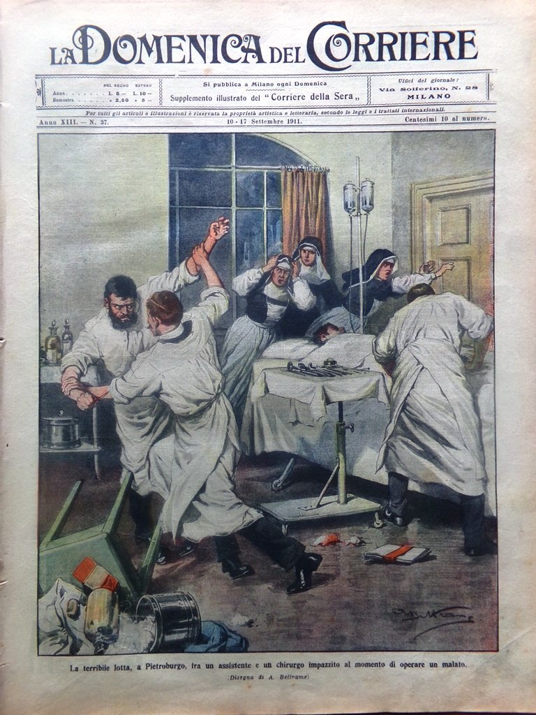 La terribile lotta, a Pietroburgo, tra un assistente e un chirurgo impazzito al momento di operare un malato (Achille Beltrame)