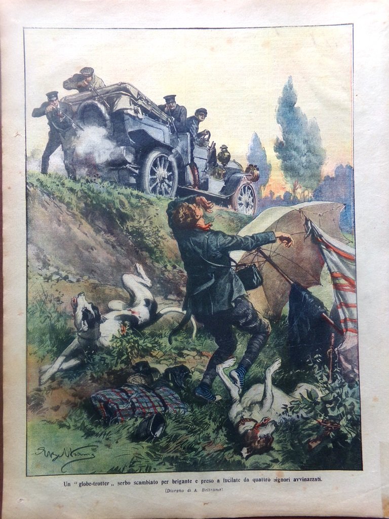 Un globe-trotter serbo scambiato per brigante e preso a fucilate da quattro signori avvinazzati (Achille Beltrame)