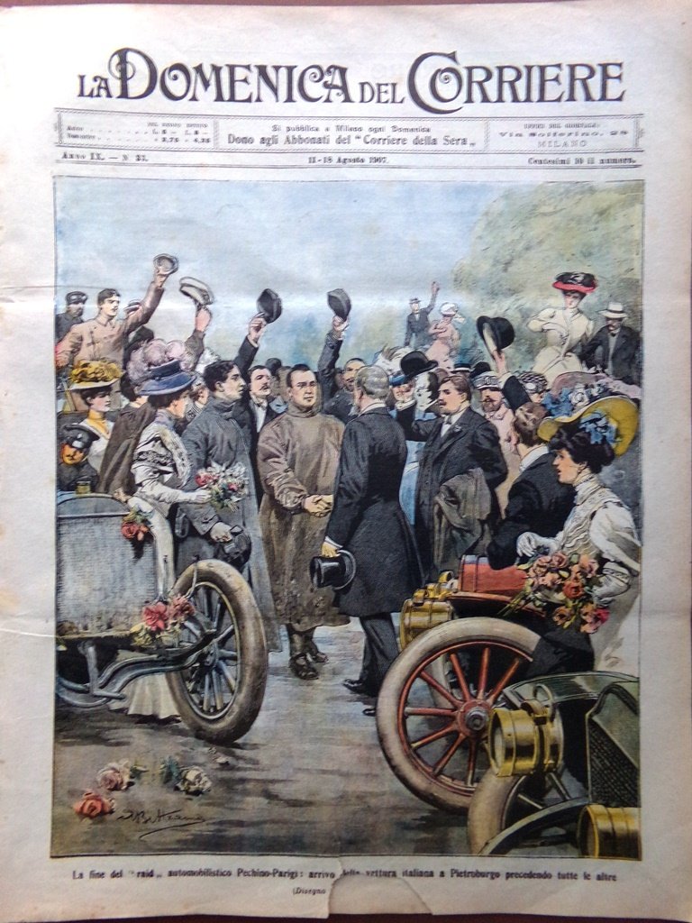 La Domenica del Corriere 11 Agosto 1907 Pechino Parigi Villari Cliniche a Napoli