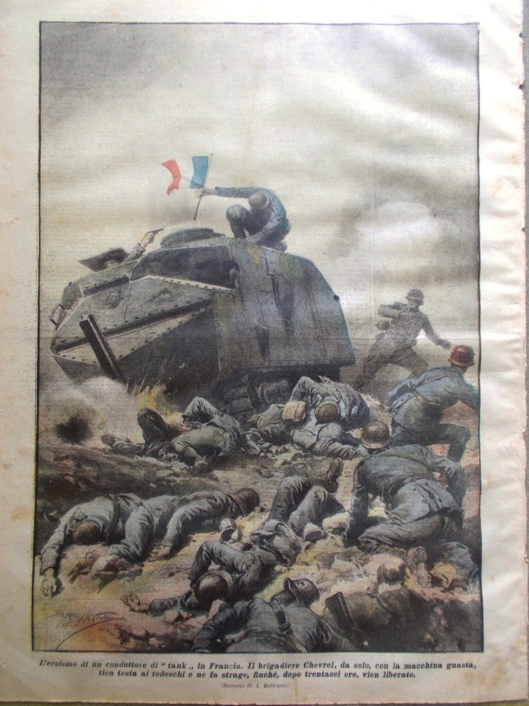 L'eroismo di un conduttore di "tank" in Francia. Il brigadiere Chevrel, da solo, con la macchina guasta, tien testa ai tedeschi e ne fa strage, finché dopo 36 ore vien liberato (Achille Beltrame)