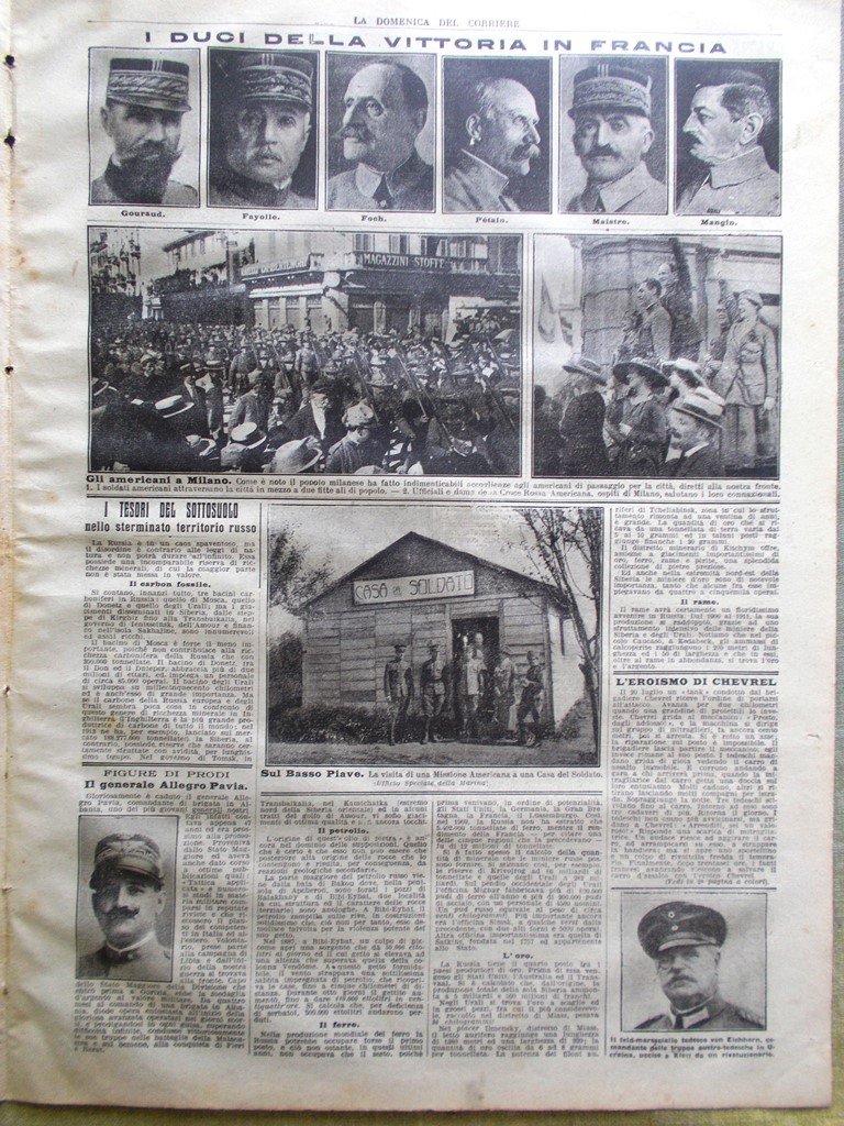 La Domenica del Corriere 11 Agosto 1918 WW1 Avanzata Francia Chevrel Pavia Foch