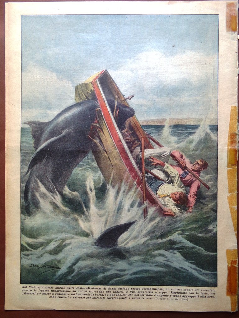 Nel bosforo, a mezzo miglio dalla costa, un enorme squalo si è avventato contro la leggera imbarcazione di due inglesi che si sono salvati per miracolo (Achille Beltrame)
