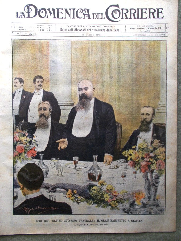 Echi dell'ultimo successo teatrale: il gran banchetto a Giacosa (Achille Beltrame)
