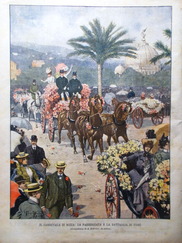 Il Carnevale di Nizza: la passeggiata e la battaglia di fiori (Achille Beltrame)