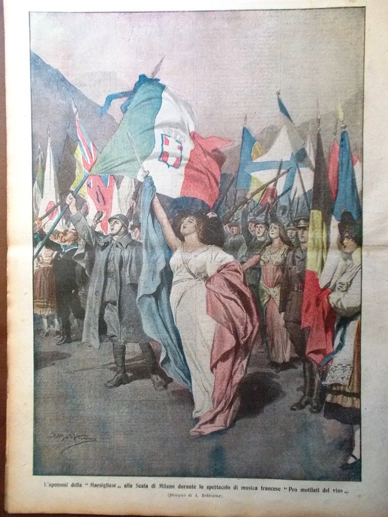 L'apoteosi della "Marsigliese" alla Scala di Milano durante lo spettacolo di musica francese "Pro mutilati del viso" (Achille Beltrame)