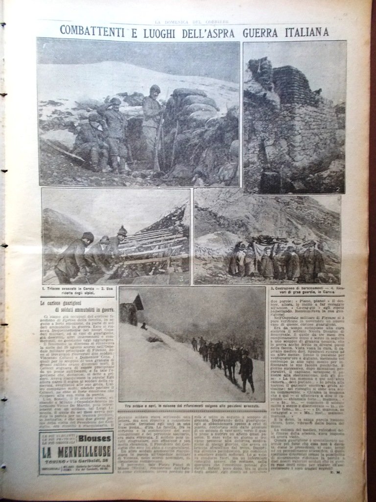 La Domenica del Corriere 11 Marzo 1917 WW1 Mine Francesi Bagnani Savoia Fucine